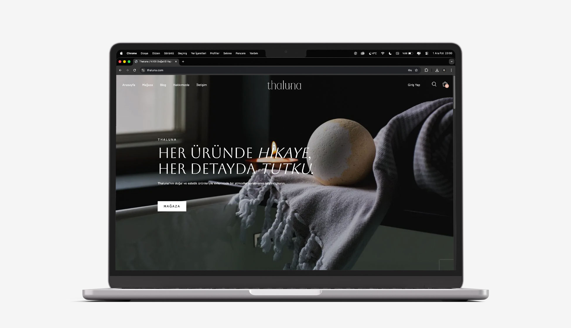 Mobil-first tasarım yaklaşımıyla tüm cihazlarda hızlı ve stabil bir deneyim sağlandı. SEO optimizasyonları ile marka dijital görünürlüğünü artırıyor ve potansiyel müşterilere daha kolay ulaşabiliyor. Bu proje, Thaluna’nın kreatif ve profesyonel kimliğini dijitalde güçlendirdi ve markanın web varlığını modern bir standartta temsil ediyor.